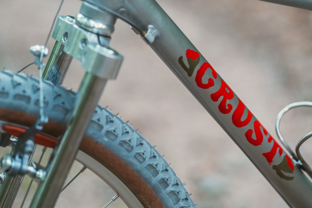ran out of decals for this frame, and the minimum was too high to order more … so just like on myyyyy personal Alumalith, the decals are *very* hand painted. its folksy, and even though it is far from perfect, I kinda like that about it. works well with the raw aluminum. a little fluid film on top. aluminum is an extremely hard surface, and doesn’t really need any corrosion protection, but this lanolin based stuff is what we and apparently Charlie Cunningham use/used on all our frames for a nice luster.