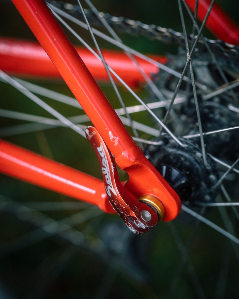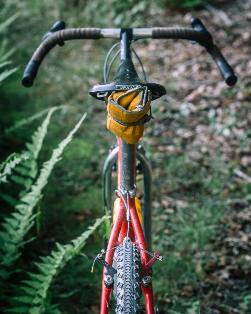 it sniffs very fragrantly. the body positioning on this set up is a lot more relaxed, and the bike overall is a bit heftier — so I would choose this for sandal’d riding, rougher stuff, and overnighters, whereas my alumax is set up to just be FAST grav daddy. not that the alumax couldn’t be set up just like this, but it is nice to have both to chose from when I head out for my afternoon rides.