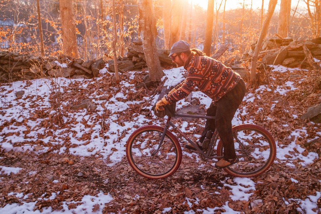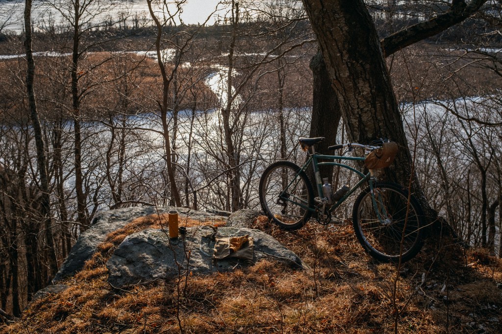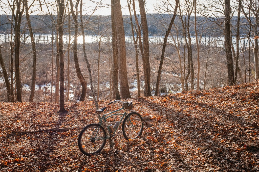 on really cold days take your bike for a hike! good for the upper body and you will be warm. the hiking does wonders for chilly toes. bring a thermos of tea so you can stop and take it in.