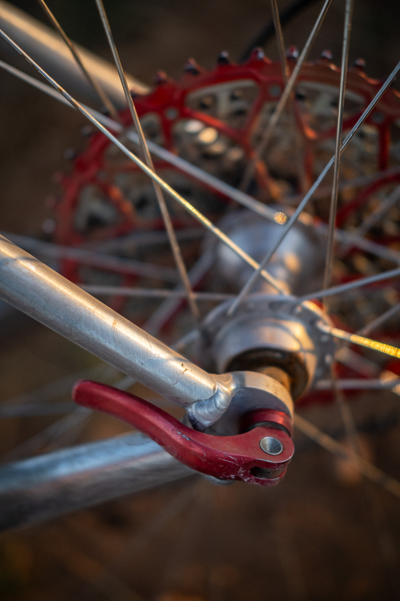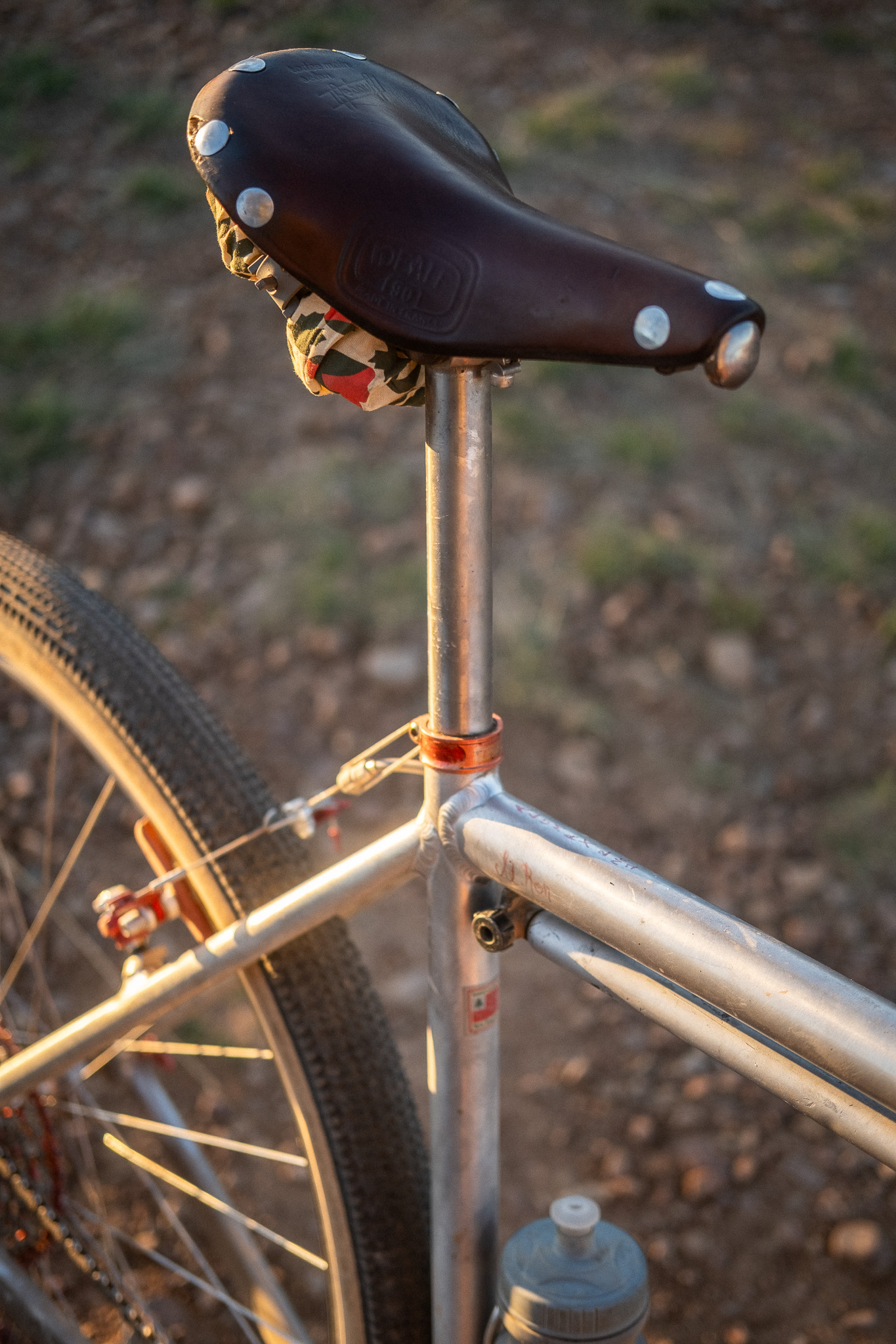 Aluminum bikes get a bad wrap being sandwiched between steel and carbon. Their decade of high end relevancy was trounced by the marketing pushes of the carbon age. Carbon fiber is an exceptional material, don’t get me wrong, but it certainly lacks the personality of metal. Aluminum is a great way to accomplish something that is less expensive than ti and carbon, but still lighter than steel. People thought it was too stiff, and experienced atop 23mm tires at 120psi, it often times is. On modern tires at modern pressures, however, that harshness is not perceivable. Let’s not forget that compliant steel fork we were just talking about too! Another way to smooth a bike out is with a long titanium seat post, another reason for the sloping geometry.