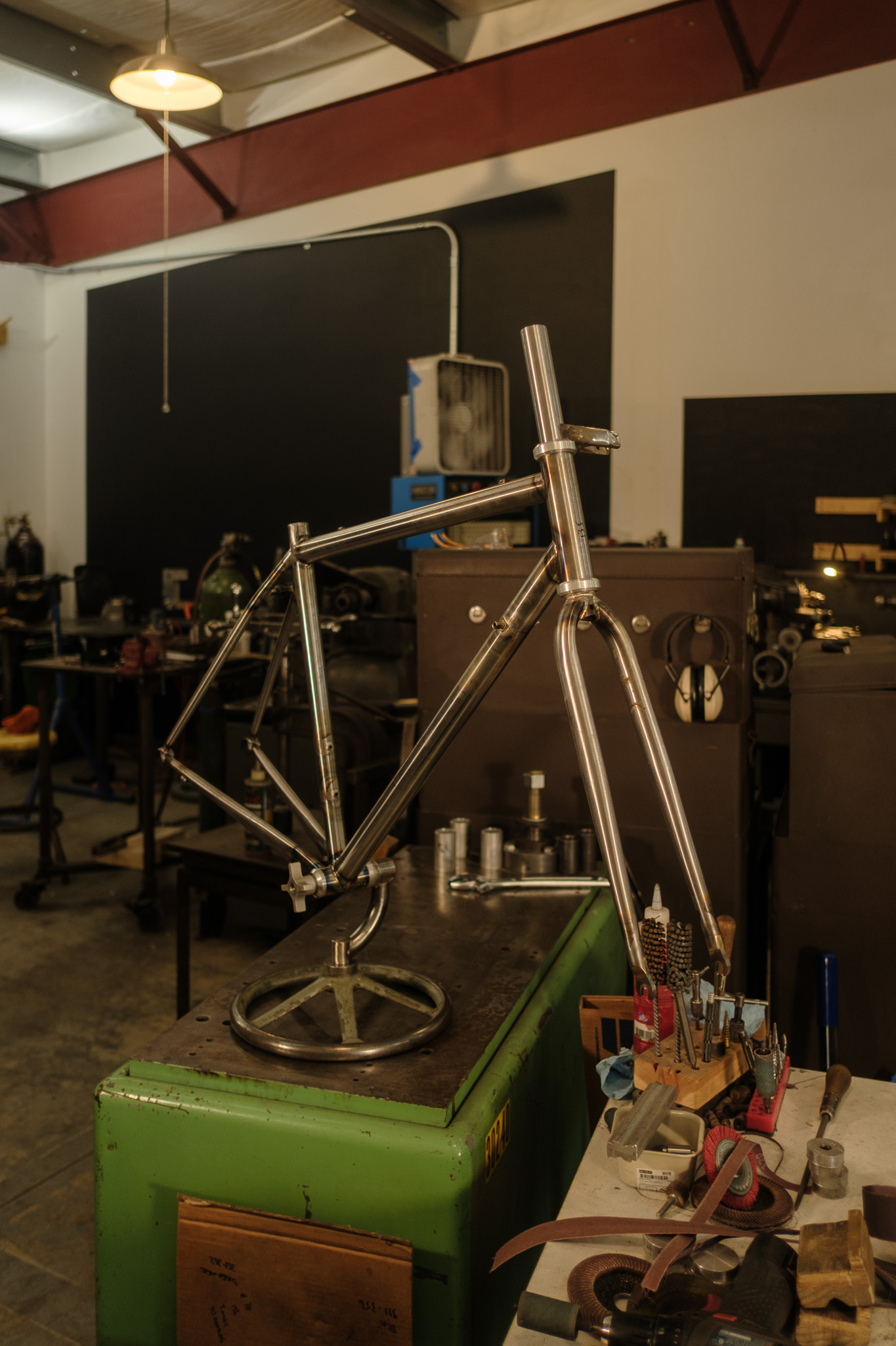this frame will look like this bike. the birthing process. You can have your frame raw, where I apply decals and cover the frame in a lanolin based protectant, or for an extra 100-120 bucks, I can basically have it powered coated any color you like.